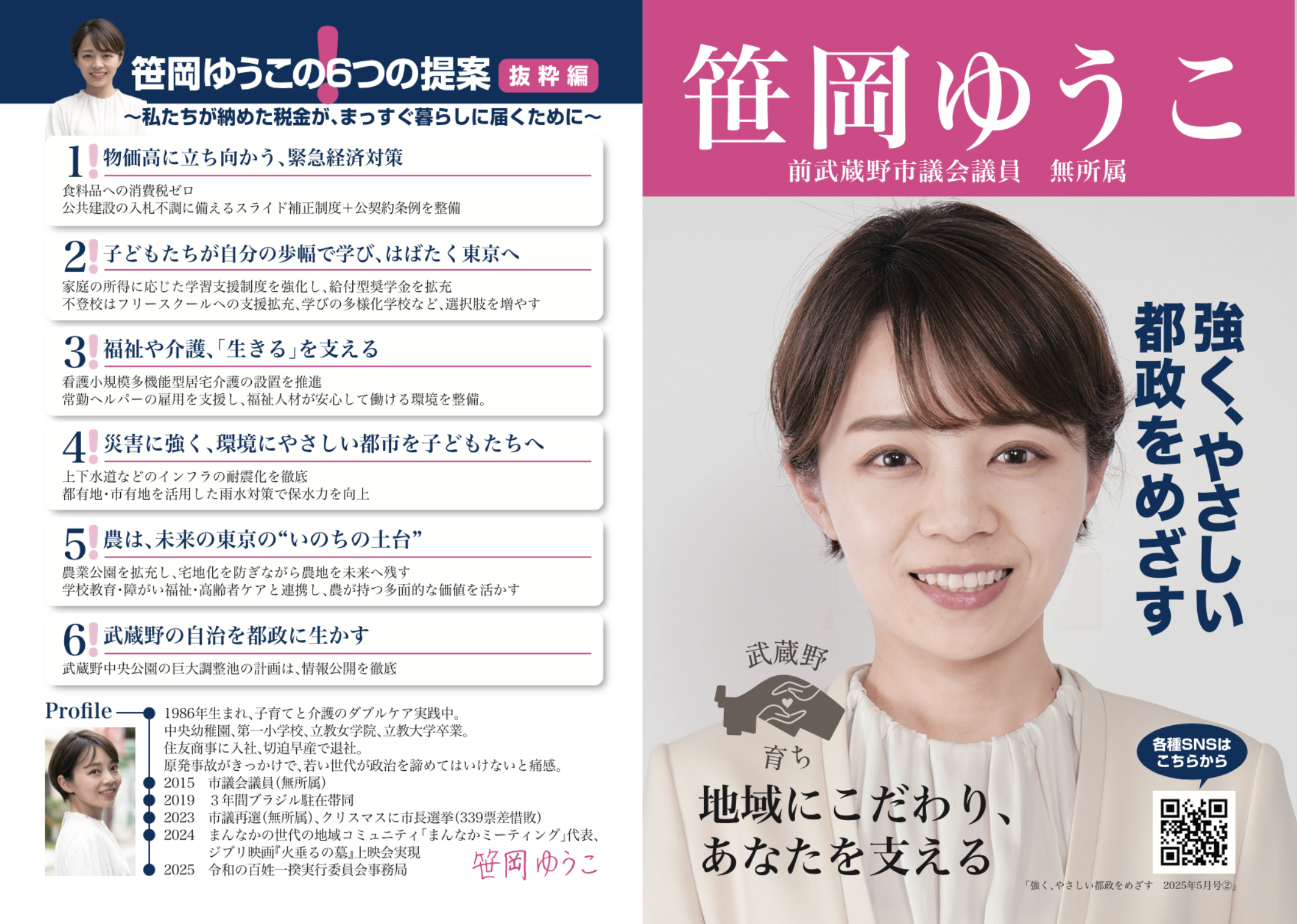 ↓2015年、統一地方選初挑戦の際に掲げた公約です。