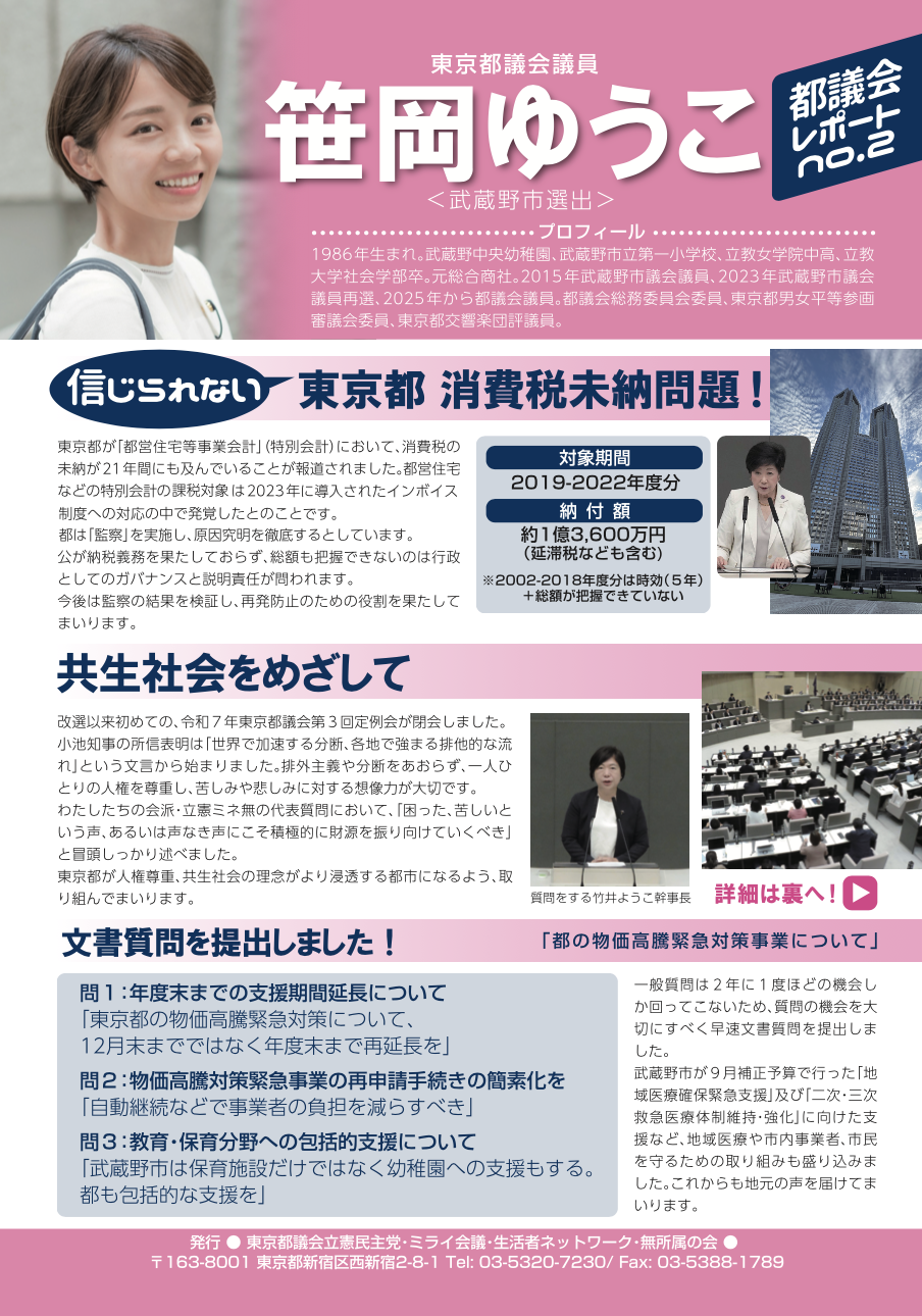 2018笹岡ゆうこ市議会レポート夏号 表